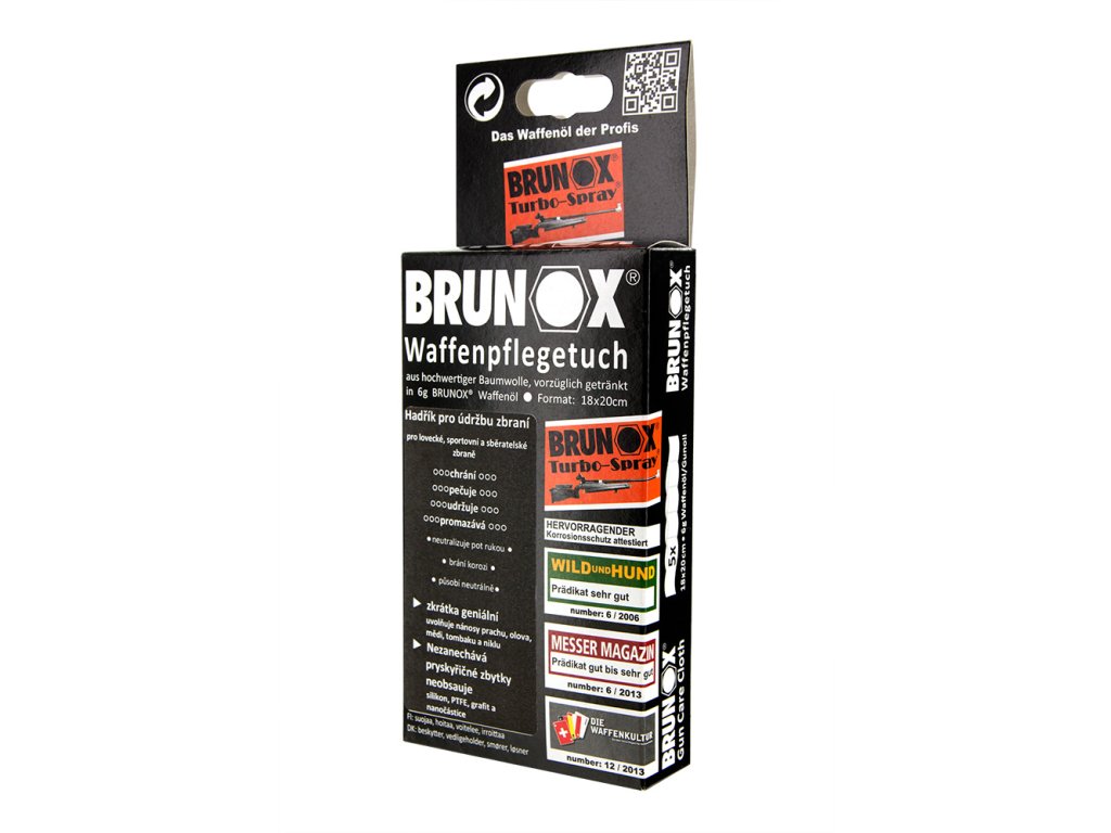 Aby bylo prostředek BRUNOX možné použít k ochraně před korozí kdykoli a kdekoli, je k dispozici vysoce praktický a účinný bavlněný hadřík BRUNOX, napuštěný 6 g prostředku. Zbraň s jeho pomocí ochráníte jedním pohybem ruky. Díky kvalitnímu napuštění můžete bavlněný hadřík použít opakovaně ke konzervaci, k neutralizaci potu z rukou a k čištění hlavně. Bavlněný hadřík BRUNOX se prodává v atraktivní krabičce obsahující pět kusů. Toto balení lovcům a majitelům služebních zbraní i příslušníkům armády určitě přijde vhod jako ideální pomůcka k údržbě.Doplňkové parametry