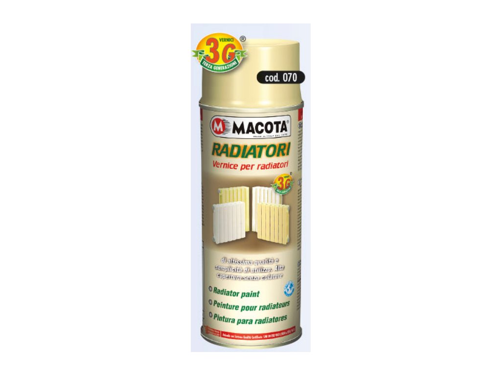 Ideální pro lakování radiátorů z litiny, hliníku a oceli. Schne v průběhu 10 minut. Odolné proti smytí a to i se silnými čistícími prostředky nebo alkoholem, nežloutne. Odolává teplotám do 150°C. ˜Před natřením povrch důkladně očistěte. Dobře protřepejte po dobu několika minut. Teplota nádoby musí být okolo 20°/25°C. Je vhodné zkontrolovat ventil krátkým výstřikem. Nanášejte ze vzdálenosti 25 cm, v případě potřeby použijte opakovaně. Mezi jednotlivými nástřiky je potřeba počkat, aby se zabránilo stékání. Krycí schopnost jedné nádoby je 1,5-2 m². Nátěr lze odstranit acetonem.Doplňkové parametry